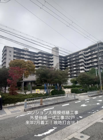 マンション(152戸)の大規模修繕工事の現地打ち合わせ。