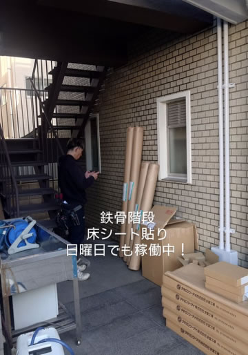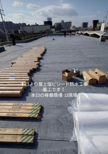 ウレタン防水工事、塩ビシート防水工事、床シート工事です。